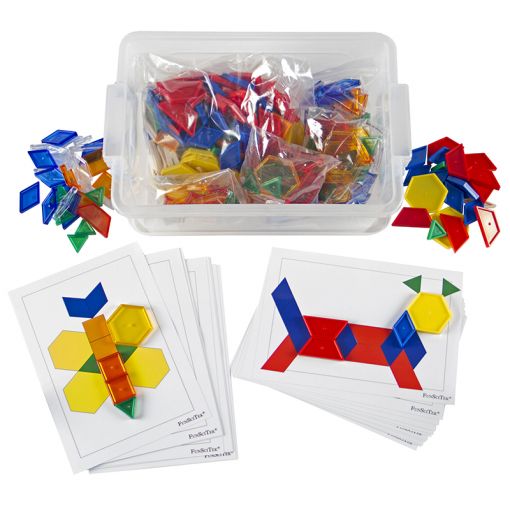 Age 3+ | 446pc Assorted Pattern blocks and 24 cards. Use the shapes and pattern cards to improve logical thinking and spatial perception skills - vital for mathematical thinking. Content: 2-sided Recessed Transparent blocks (196pc), 2-side Recessed Solid block