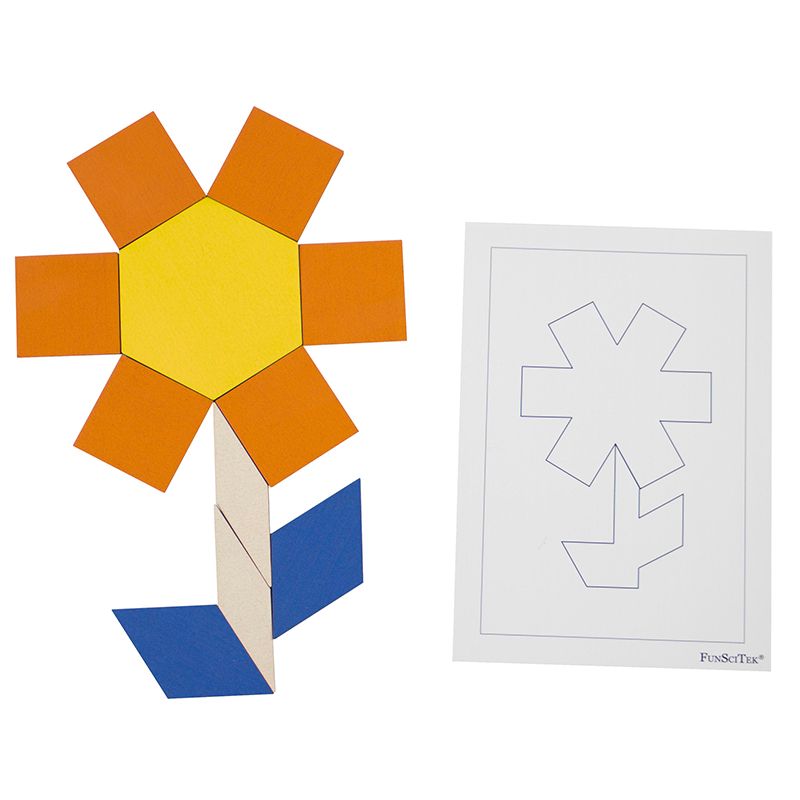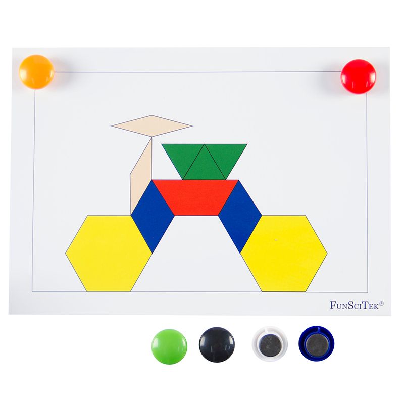 Pattern Blocks 6-shape 6-colour - Wood Med Magnetic (98pc) & Cards (A5 24pc)