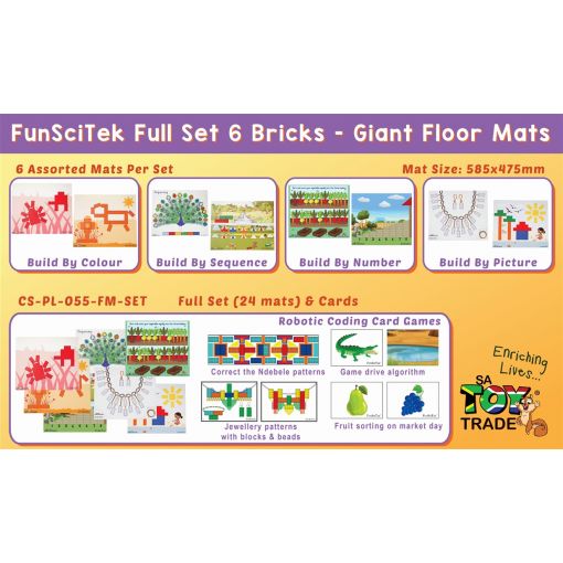 6 Bricks - FunSciTek Full Set - Giant PVC Floor Mats (24x mats & Card Games)